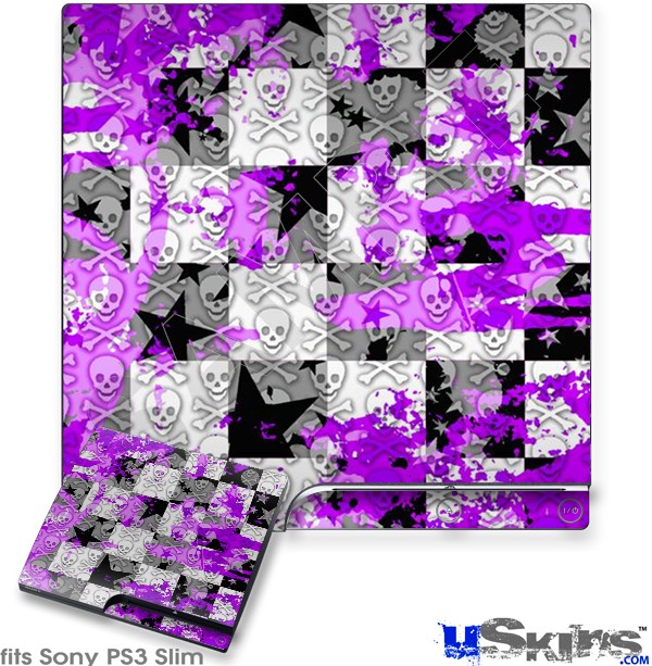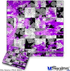 Decal Skin compatible with Sony PS3 Slim Purple Checker Skull Splatter