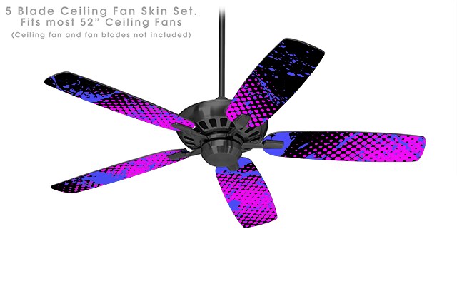 Halftone Splatter Blue Hot Pink - Ceiling Fan Skin Kit fits most 52 inch fans (FAN and BLADES SOLD SEPARATELY)