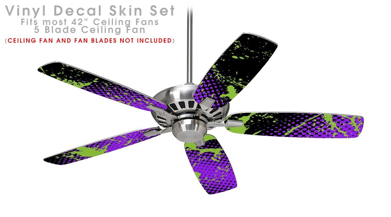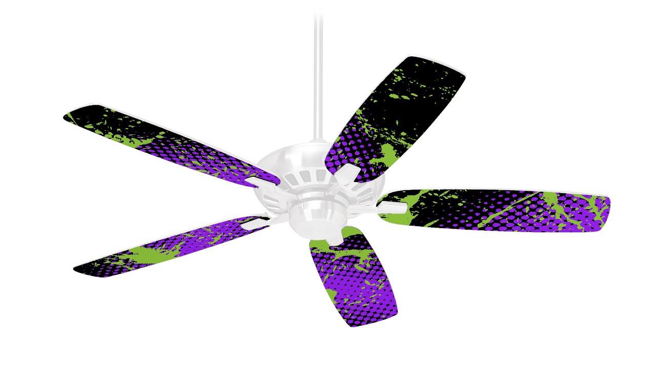 Halftone Splatter Green Purple - Ceiling Fan Skin Kit fits most 42 inch fans (FAN and BLADES SOLD SEPARATELY)