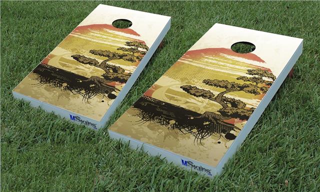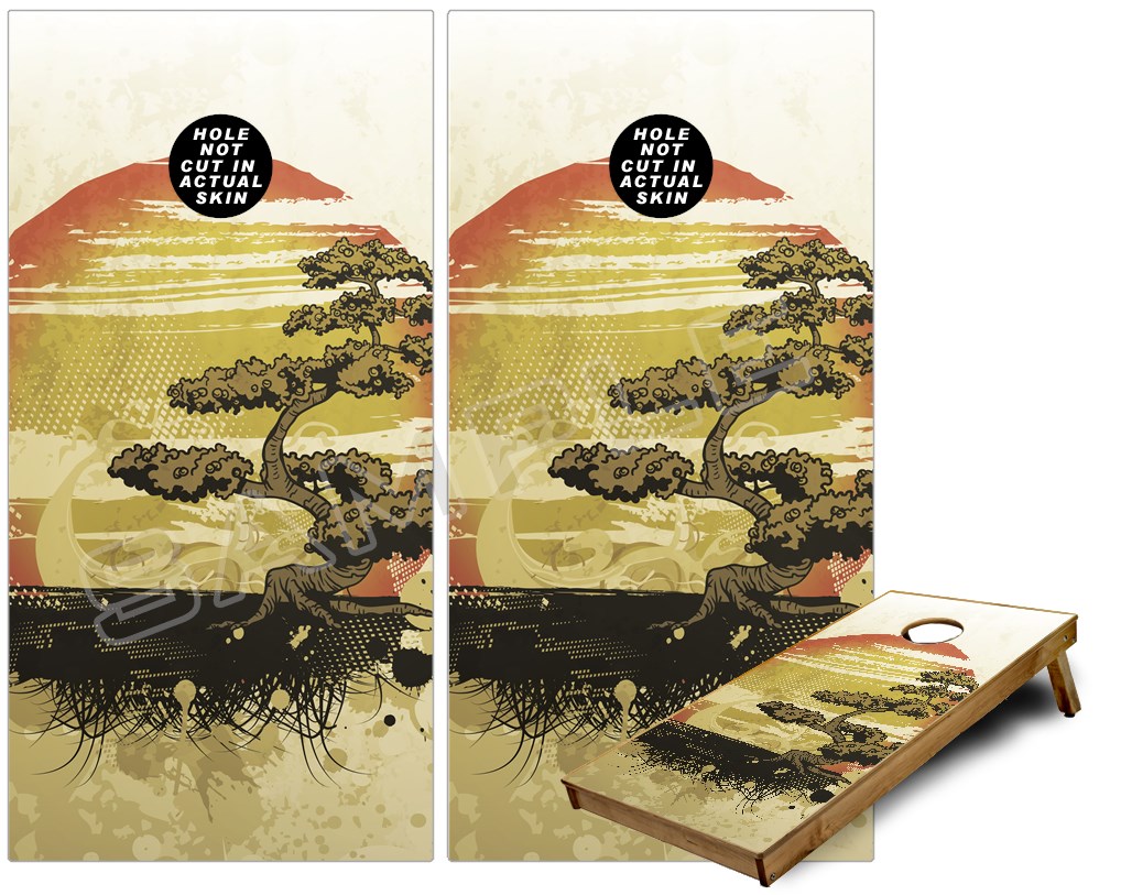 Cornhole Game Board Vinyl Skin Wrap Kit - Premium Laminated - Bonsai Sunset fits 24x48 game boards (GAMEBOARDS NOT INCLUDED)