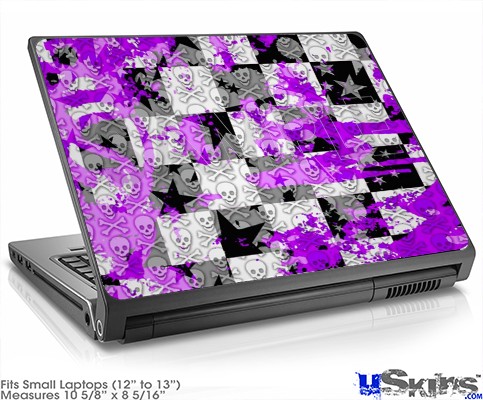 Laptop Skin (Small) - Purple Checker Skull Splatter