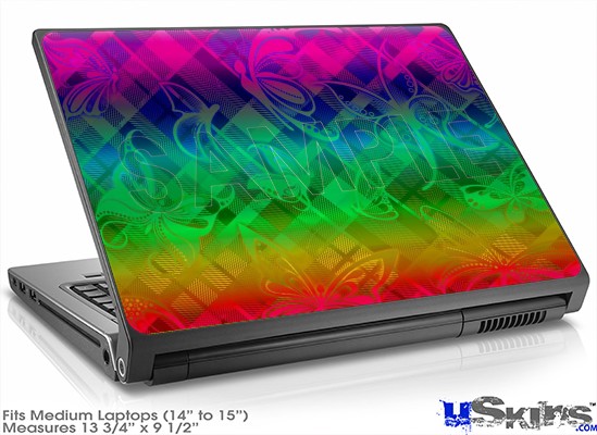 Laptop Skin fits most medium size laptops with 14" to 15" screens. Skin measures 13 3/4" wide x 9 1/2" high. uSkinsTM self adhering vinyl skins will look amazing on your electronic gear, printed at the highest resolution possible for unbeatable color and razor sharp clarity. Unlike bulky silicon, plastic or metal cases and faceplates, uSkins are designed to be thin and very tough. uSkins are a composite of layered commercial grade vinyls. The bottom layer is a soft, flexible vinyl with a special removable adhesive that is easily positioned, applied without air bubbles, and effortlessly removed without leaving a sticky residue. uSkins are printed with the latest in UV protected inks that resist fading for up to 3 years even in direct sunlight. Finally we bond a professional grade laminate over the entire skin adding a professional glossy protective finish.