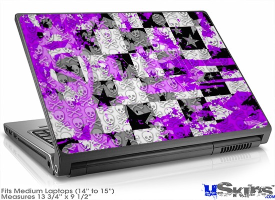 Laptop Skin (Medium) - Purple Checker Skull Splatter