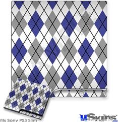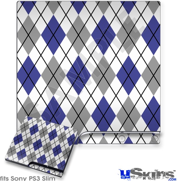 Decal Skin compatible with Sony PS3 Slim Argyle Blue and Gray