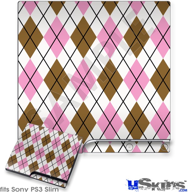 Decal Skin compatible with Sony PS3 Slim Argyle Pink and Brown