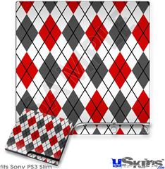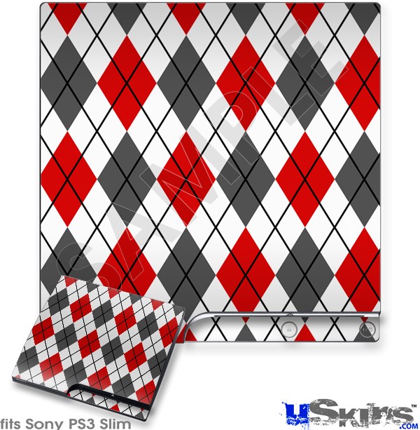 Decal Skin compatible with Sony PS3 Slim Argyle Red and Gray