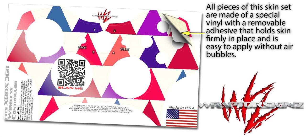 XBOX 360 Wireless Controller Decal Style Skin - Triangles Berries (CONTROLLER NOT INCLUDED)