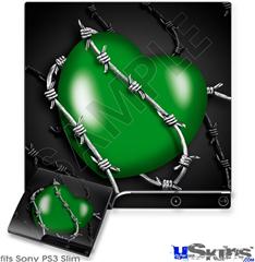 Decal Skin compatible with Sony PS3 Slim Barbwire Heart Green