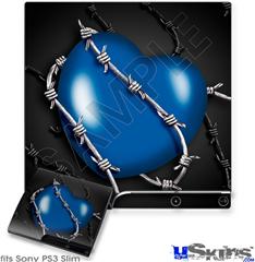 Decal Skin compatible with Sony PS3 Slim Barbwire Heart Blue