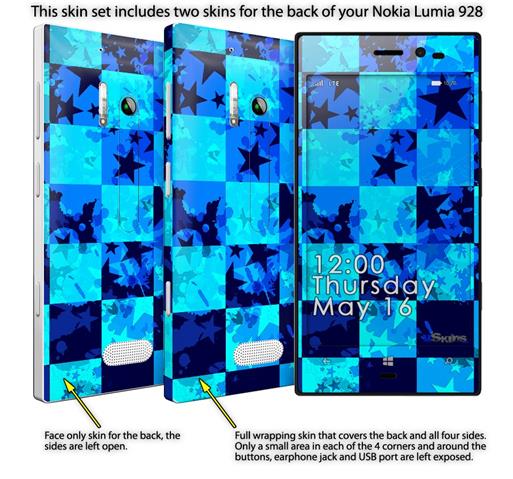 • Decal style vinyl skin covers front, back and side of Nokia Lumia 928 phone.