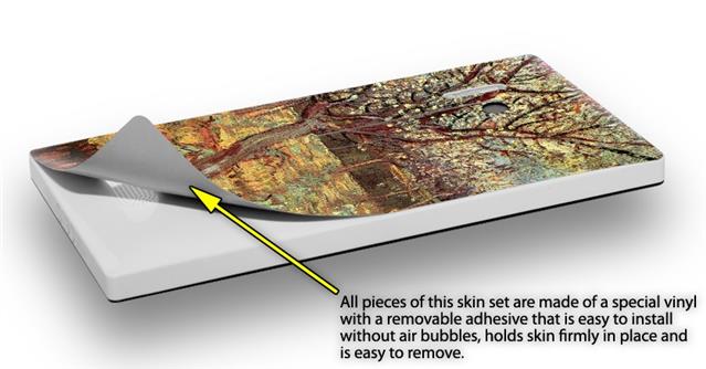 uSkins™ are self adhering vinyl skins that help prevent scratches and look great doing it. Unlike bulky silicon, plastic or metal cases and faceplates, uSkins are designed to be thin and very tough. uSkins are a composite of two layers of commercial grade materials. The bottom layer is a soft, flexible vinyl with a special removable adhesive that is easily positioned, applied without air bubbles, and effortlessly removed without leaving a sticky residue. Next we print the bottom layer with UV protected, fade resistant inks that deliver superb photo quality designs in vibrant colors. Finally we bond a professional grade laminate over the entire skin adding a glossy protective finish.
