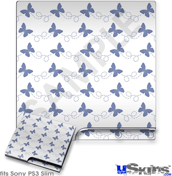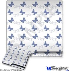 Decal Skin compatible with Sony PS3 Slim Pastel Butterflies Blue on White