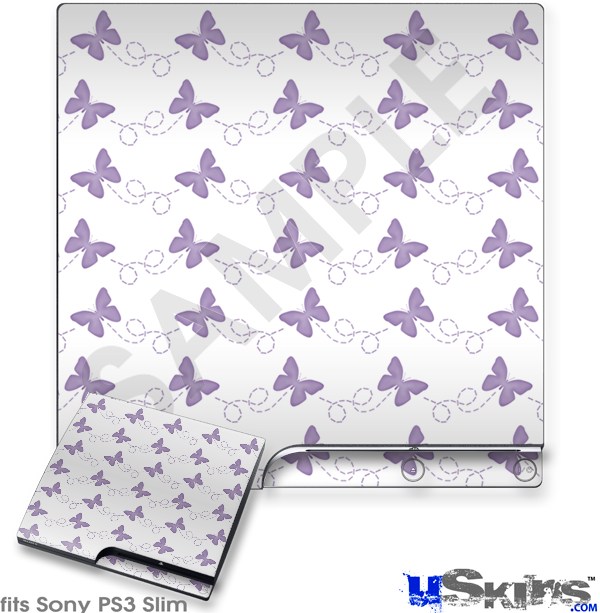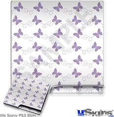 Decal Skin compatible with Sony PS3 Slim Pastel Butterflies Purple on White