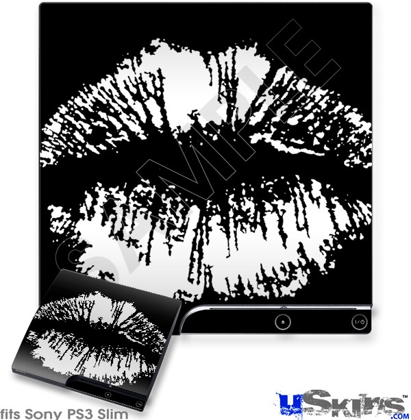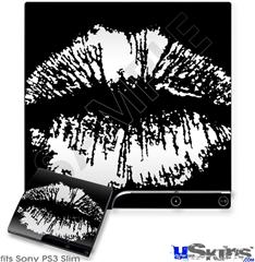 Decal Skin compatible with Sony PS3 Slim Big Kiss White on Black