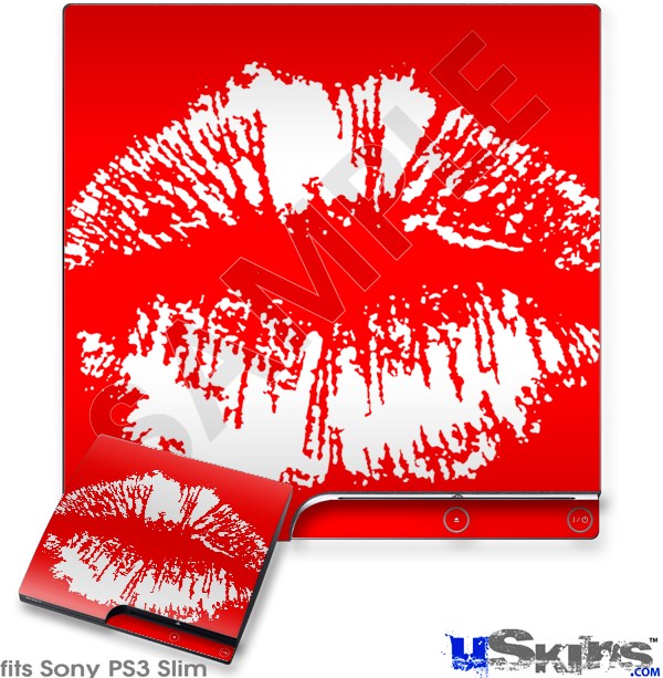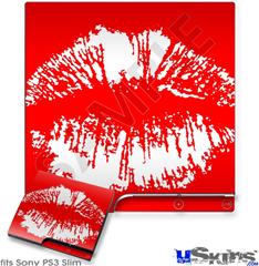 Decal Skin compatible with Sony PS3 Slim Big Kiss White on Red