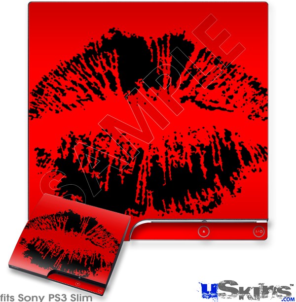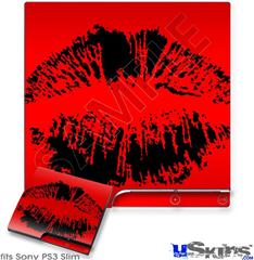 Decal Skin compatible with Sony PS3 Slim Big Kiss Black on Red