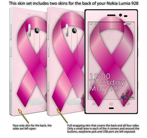 Hope Breast Cancer Pink Ribbon on Pink - Decal Style Skin (fits Nokia Lumia 928)