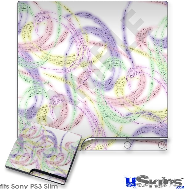 Decal Skin compatible with Sony PS3 Slim Neon Swoosh on White