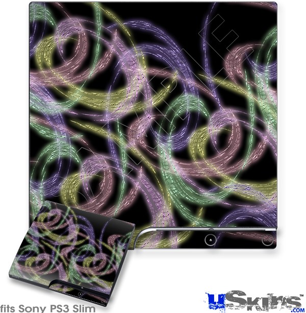 Decal Skin compatible with Sony PS3 Slim Neon Swoosh on Black