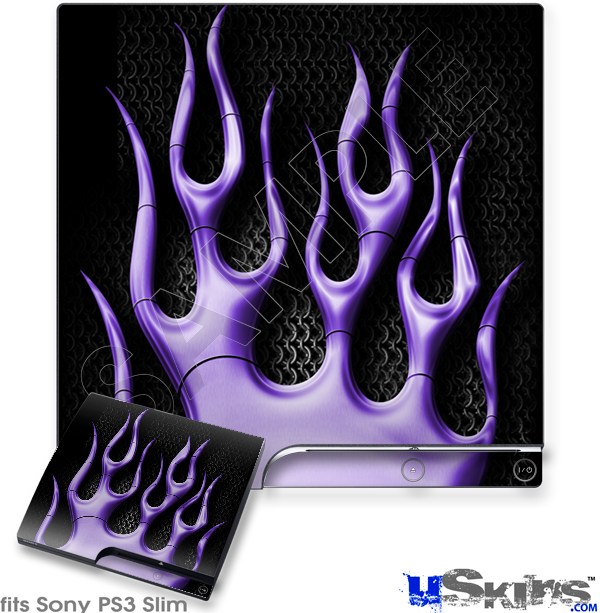 Decal Skin compatible with Sony PS3 Slim Metal Flames Purple