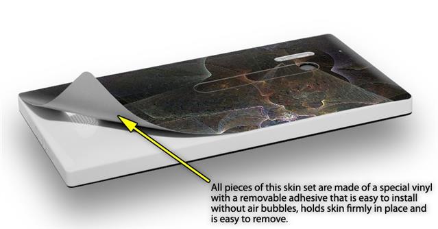uSkins™ are self adhering vinyl skins that help prevent scratches and look great doing it. Unlike bulky silicon, plastic or metal cases and faceplates, uSkins are designed to be thin and very tough. uSkins are a composite of two layers of commercial grade materials. The bottom layer is a soft, flexible vinyl with a special removable adhesive that is easily positioned, applied without air bubbles, and effortlessly removed without leaving a sticky residue. Next we print the bottom layer with UV protected, fade resistant inks that deliver superb photo quality designs in vibrant colors. Finally we bond a professional grade laminate over the entire skin adding a glossy protective finish.