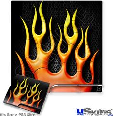 Decal Skin compatible with Sony PS3 Slim Metal Flames