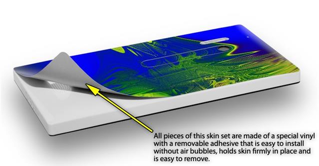 uSkins™ are self adhering vinyl skins that help prevent scratches and look great doing it. Unlike bulky silicon, plastic or metal cases and faceplates, uSkins are designed to be thin and very tough. uSkins are a composite of two layers of commercial grade materials. The bottom layer is a soft, flexible vinyl with a special removable adhesive that is easily positioned, applied without air bubbles, and effortlessly removed without leaving a sticky residue. Next we print the bottom layer with UV protected, fade resistant inks that deliver superb photo quality designs in vibrant colors. Finally we bond a professional grade laminate over the entire skin adding a glossy protective finish.