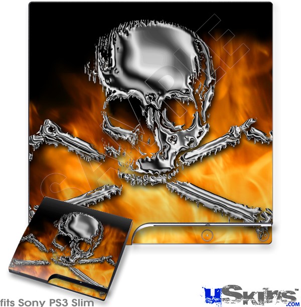 Decal Skin compatible with Sony PS3 Slim Chrome Skull on Fire