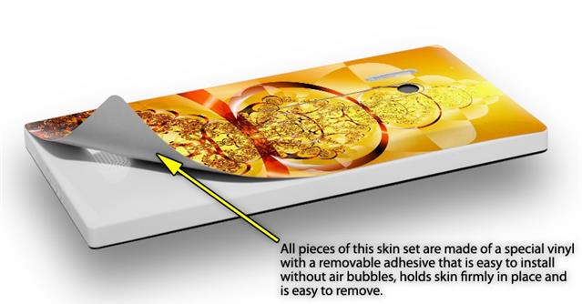 uSkins™ are self adhering vinyl skins that help prevent scratches and look great doing it. Unlike bulky silicon, plastic or metal cases and faceplates, uSkins are designed to be thin and very tough. uSkins are a composite of two layers of commercial grade materials. The bottom layer is a soft, flexible vinyl with a special removable adhesive that is easily positioned, applied without air bubbles, and effortlessly removed without leaving a sticky residue. Next we print the bottom layer with UV protected, fade resistant inks that deliver superb photo quality designs in vibrant colors. Finally we bond a professional grade laminate over the entire skin adding a glossy protective finish.