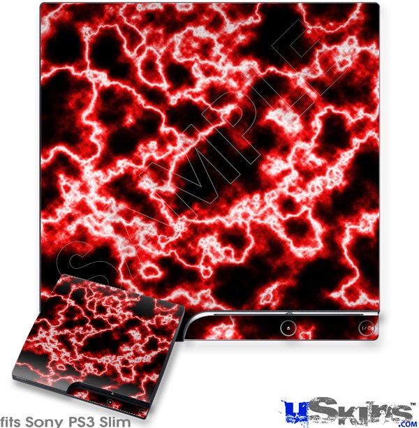 Decal Skin compatible with Sony PS3 Slim Electrify Red