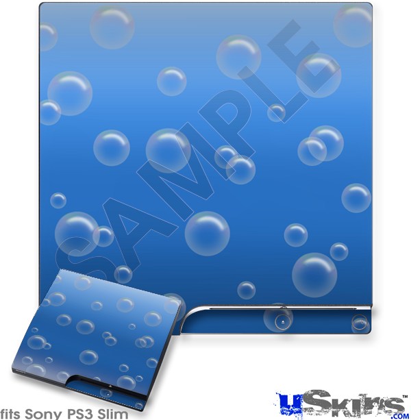 Decal Skin compatible with Sony PS3 Slim Bubbles Blue