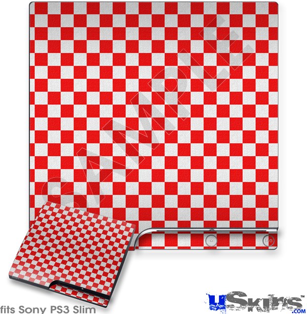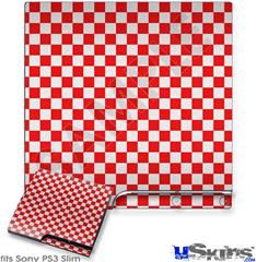 Decal Skin compatible with Sony PS3 Slim Checkered Canvas Red and White