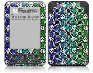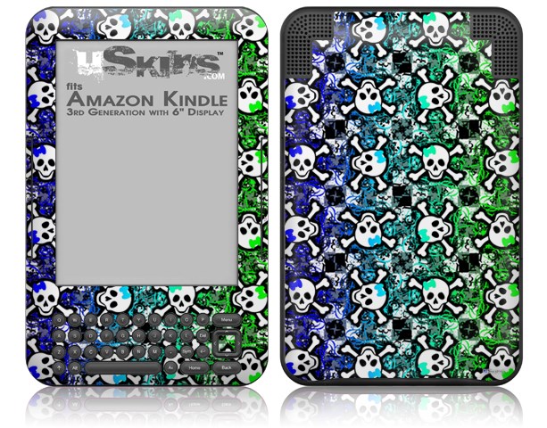 Splatter Girly Skull Rainbow - Decal Style Skin fits Amazon Kindle 3 Keyboard (with 6 inch display)