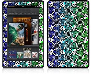 Amazon Kindle Fire (Original) Decal Style Skin - Splatter Girly Skull Rainbow