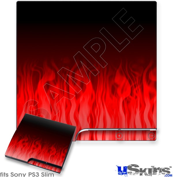 Decal Skin compatible with Sony PS3 Slim Fire Flames Red