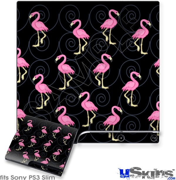 Decal Skin compatible with Sony PS3 Slim Flamingos on Black