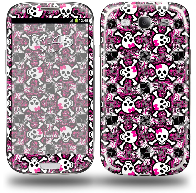Splatter Girly Skull Pink - Decal Style Skin (fits Samsung Galaxy S III S3)