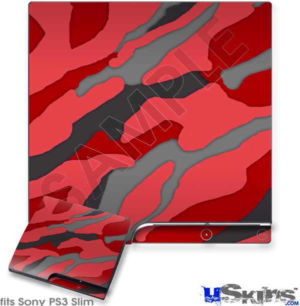 Decal Skin compatible with Sony PS3 Slim Camouflage Red