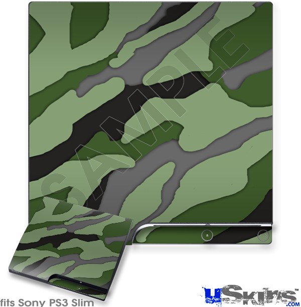 Decal Skin compatible with Sony PS3 Slim Camouflage Green