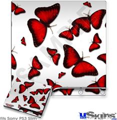 Decal Skin compatible with Sony PS3 Slim Butterflies Red