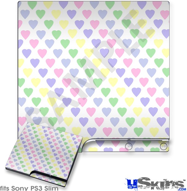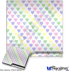 Decal Skin compatible with Sony PS3 Slim Pastel Hearts on White