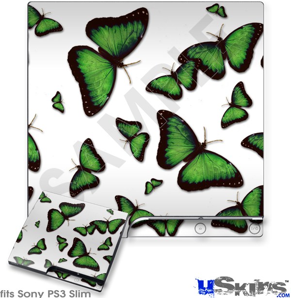 Decal Skin compatible with Sony PS3 Slim Butterflies Green