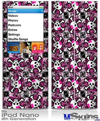 iPod Nano 4G Skin - Splatter Girly Skull Pink