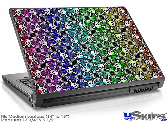 Laptop Skin (Medium) - Splatter Girly Skull Rainbow