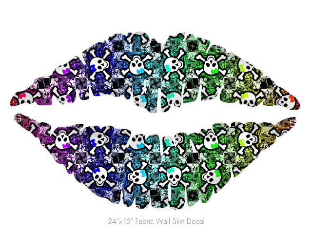 Splatter Girly Skull Rainbow - Kissing Lips Fabric Wall Skin Decal measures 24x15 inches