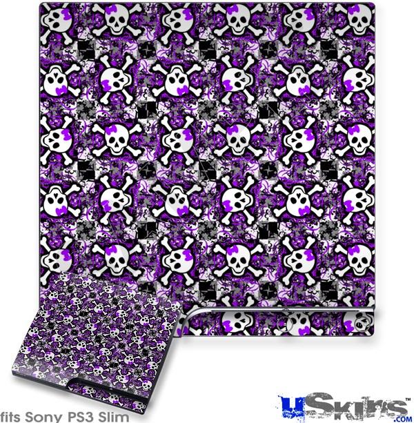 Decal Skin compatible with Sony PS3 Slim Splatter Girly Skull Purple