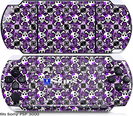Sony PSP 3000 Skin - Splatter Girly Skull Purple