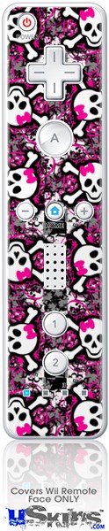 Wii Remote Controller Face ONLY Skin - Splatter Girly Skull Pink