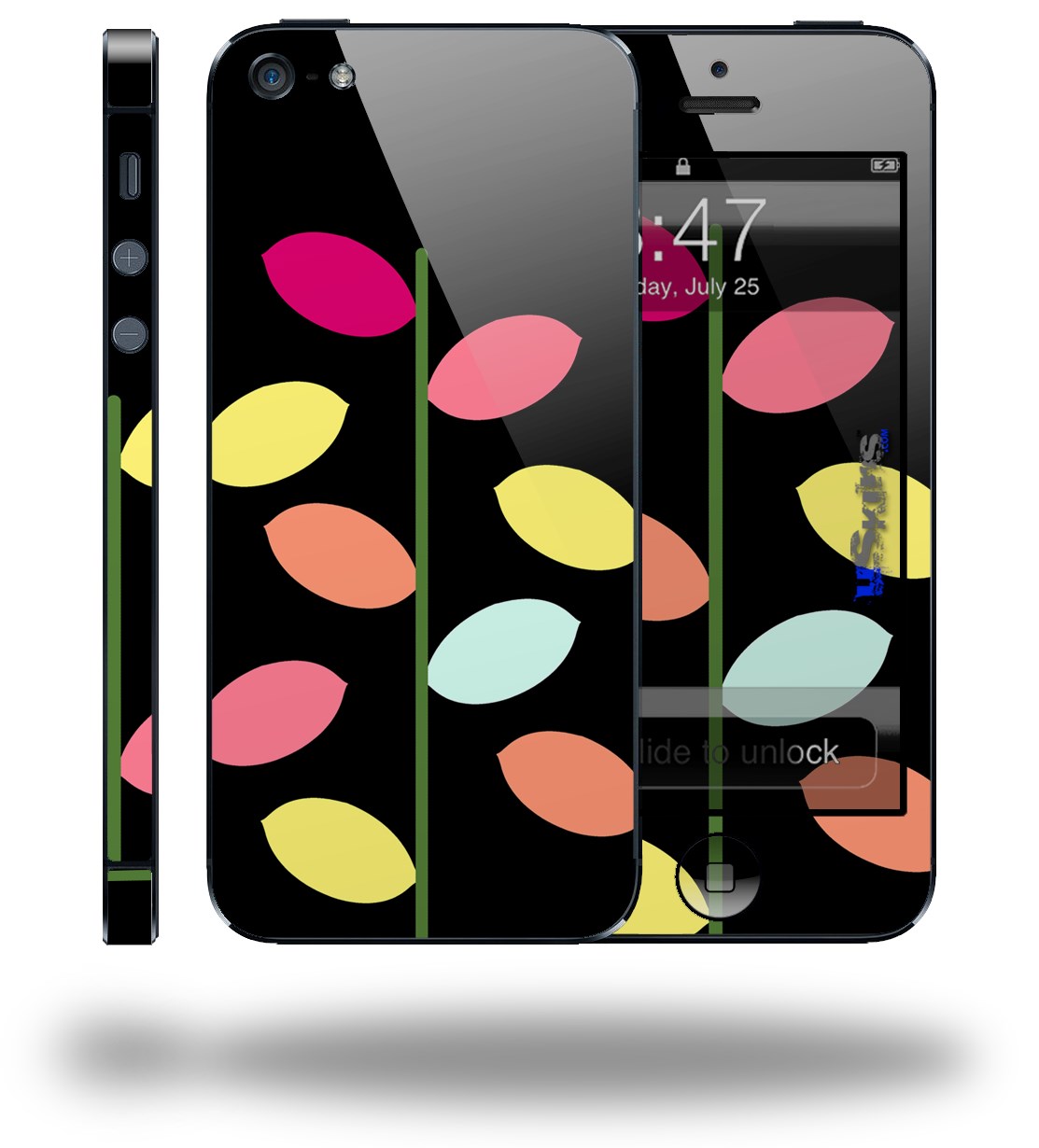 Plain Leaves On Black - Decal Style Vinyl Skin (fits Apple Original iPhone 5, NOT the iPhone 5C or 5S)