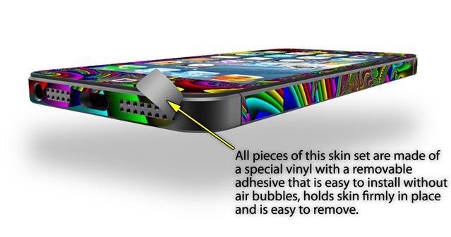 uSkins™ are self adhering vinyl skins that help prevent scratches and look great doing it. Unlike bulky silicon, plastic or metal cases and faceplates, uSkins are designed to be thin and very tough. uSkins are a composite of two layers of commercial grade materials. The bottom layer is a soft, flexible vinyl with a special removable adhesive that is easily positioned, applied without air bubbles, and effortlessly removed without leaving a sticky residue. Next we print the bottom layer with UV protected, fade resistant inks that deliver superb photo quality designs in vibrant colors. Finally we bond a professional grade laminate over the entire skin adding a glossy protective finish.